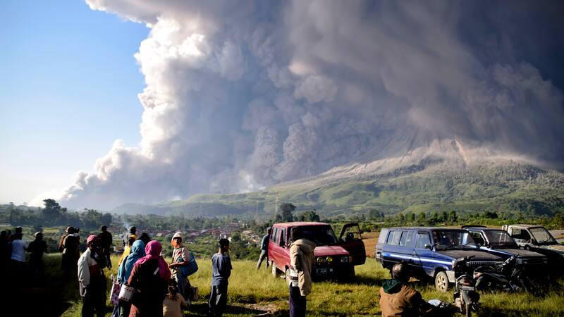 La impresionante columna de humo que dejó la explosión del volcán Sinabung en Indonesia