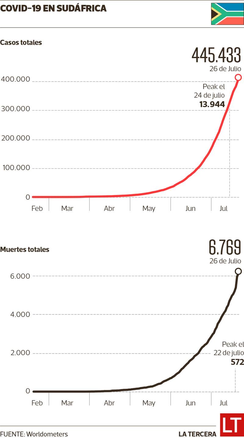 El país concentra más de la mitad de los casos reportados en África, con 445.433 contagiados. A diferencia de sus vecinos, el país ha podido reportar sus casos gracias a 2,7 millones de test.