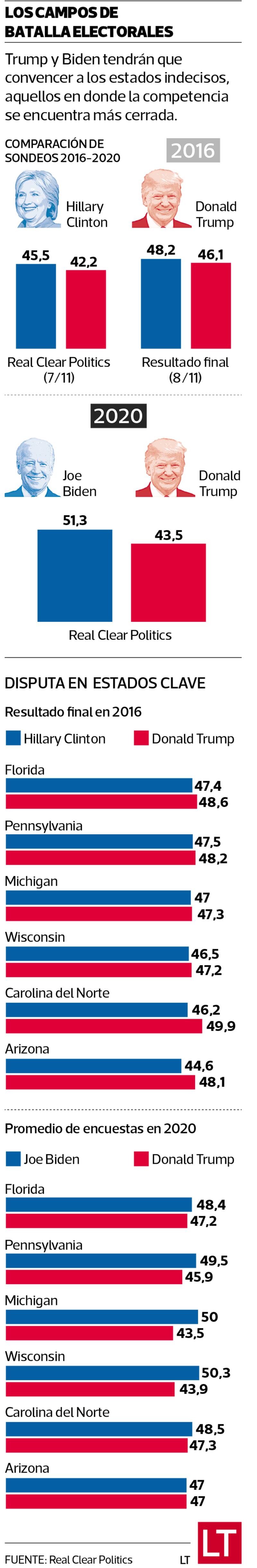 Pese a su ventaja, ¿Joe Biden podría perder como Hillary Clinton en 2016?
