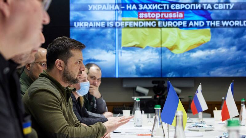 Los primeros ministros Mateusz Morawiecki, de Polonia; Petr Fiala, de la República Checa; y Janez Jansa, de Eslovenia, se reunieron en Kiev con Zelensky, mientras arrecian los bombardeos rusos. Según el diario El País, los tres gobernantes llegaron en tren este martes a la capital ucraniana en una iniciativa de la que se ha distanciado la Comisión Europea.