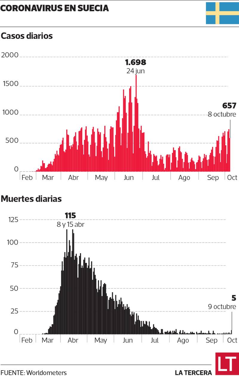 Sin embargo, los casos han vuelto a aumentar desde fines de septiembre, e incluso el epidemiólogo encargado de la gestión de la pandemia en Suecia, Andres Tegnell, ha decidido imponer nuevas restricciones, como que los miembros de un hogar se aíslen durante una semana si alguno de ellos se infecta. Además, recomendó el uso de mascarilla en un país donde no ha sido una práctica masiva.