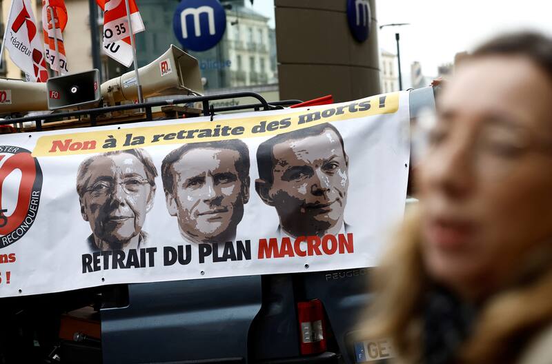 Los sindicatos franceses convocaron huelgas en todo el país después de que el Presidente Emmanuel Macron siguiera adelante con su plan para reformar el sistema de pensiones del país, una prueba decisiva de la capacidad del líder para promulgar su agenda proempresarial durante su segundo mandato.