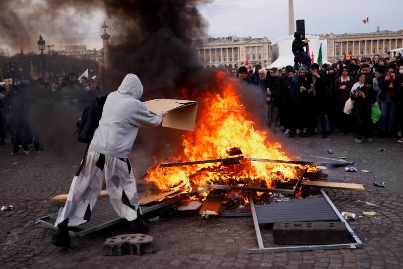 El 49.3, la atribución que tiene el Ejecutivo francés de pasar por encima del Parlamento, fue una decisión arriesgada para Macron: por un lado, le da a la oposición la oportunidad de hacer caer al gobierno a través de una moción de censura, y por el otro, le echa gasolina al fuego de las manifestaciones que llevan semana tras semana deteniendo los transportes y servicios públicos, y llevando a los franceses a la calle. Y este jueves, las protestas empezaron de inmediato en todas las ciudades de Francia, fueran grandes o medianas.