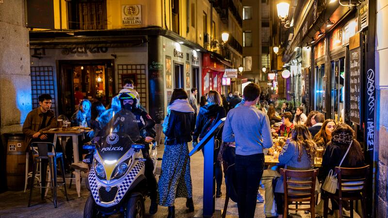 La presidenta madrileña, Isabel Díaz Ayuso, ha mantenido los bares y restaurantes abiertos, lo que ha atraído a jóvenes de otros países europeos, donde hay mayores restricciones. La capital española enfrenta el aumento de los contagios.