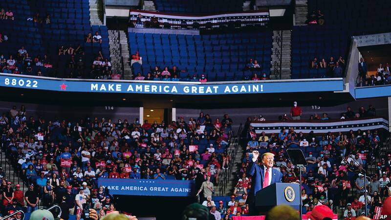 Pero no fue así. La Casa Blanca había prometido que el promocionado evento, el primer mitin de Trump en tres meses, se inundaría con hasta 100.000 personas. Las imágenes de televisión, sin embargo, mostraron grandes secciones de asientos vacíos en el BOK Center, un estadio con capacidad para 19.000 espectadores. Según The New York Times, solo asistieron 6.200 personas. Para completar el combo de malas noticias, se supo que seis colaboradores en la organización del acto dieron positivo a Covid-19.