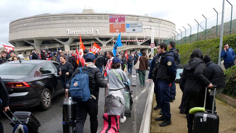 Manifestantes bloquean aeropuertos en París y crece el descontento con Macron por reforma de pensiones