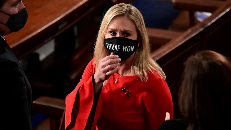 La congresista republicana, que ha asistido a la Cámara baja con mascarilla con frases como “Trump Ganó”, podría ser sancionada este jueves por compartir y hablar de teorías conspirativas.
