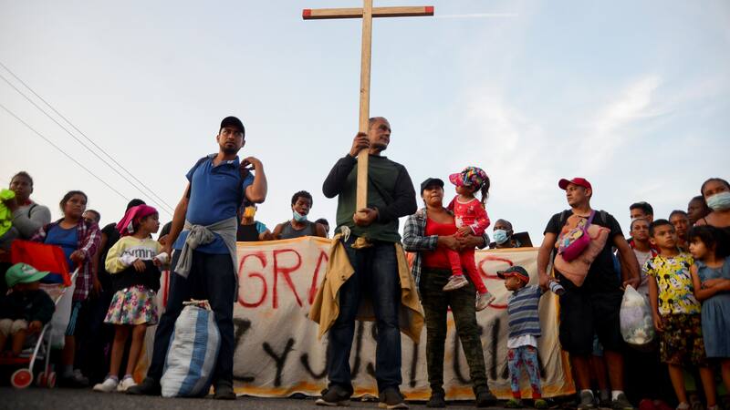 Más de 2.000 migrantes, en su mayoría centroamericanos, continuaban este lunes caminando por el sur de México hacia el norte y llegaron por la tarde a la localidad de Huixtla, en Chiapas, en medio de una intensa lluvia y tras nueve horas de caminata.