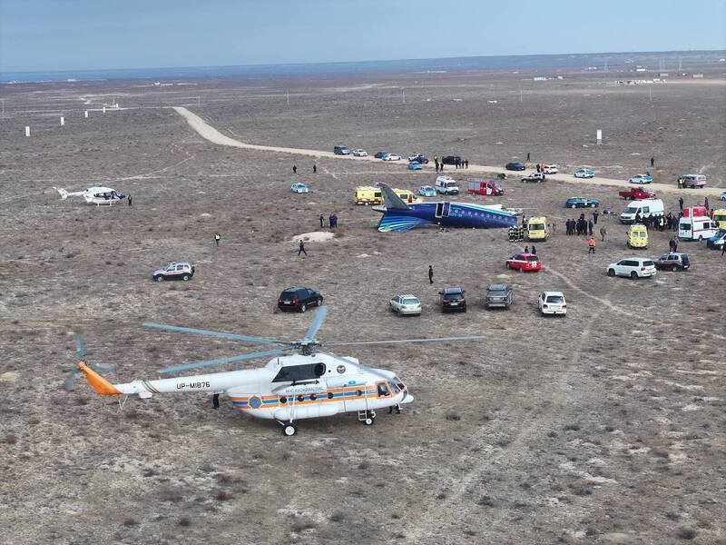 El vuelo J2-8243 de Azerbaijan Airlines viajaba desde la capital azerbaiyana, Bakú, a Grozny, en la región rusa de Chechenia, antes de realizar un aterrizaje de emergencia a aproximadamente tres kilómetros de Aktau, dijo la aerolínea.