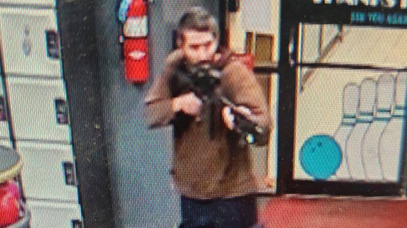 Una fotografía emitida por los alguaciles mostraba a un hombre blanco con un rifle estilo AR-15, semiautomático y una óptica láser, vestido con pantalones de combate negros y una blusa marrón, ingresando al centro recreativo Sparetime, que fue el lugar donde se iniciaron los mortales ataques.