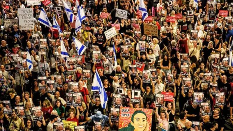 Miles de israelíes salieron este sábado de nuevo a las calles de 60 ciudades israelíes como Tel Aviv, Haifa, Beersheba, Rehovot, Cesarea o Ness Ziona para pedir la dimisión del Gobierno y un acuerdo para la liberación de los rehenes retenidos en la Franja de Gaza.