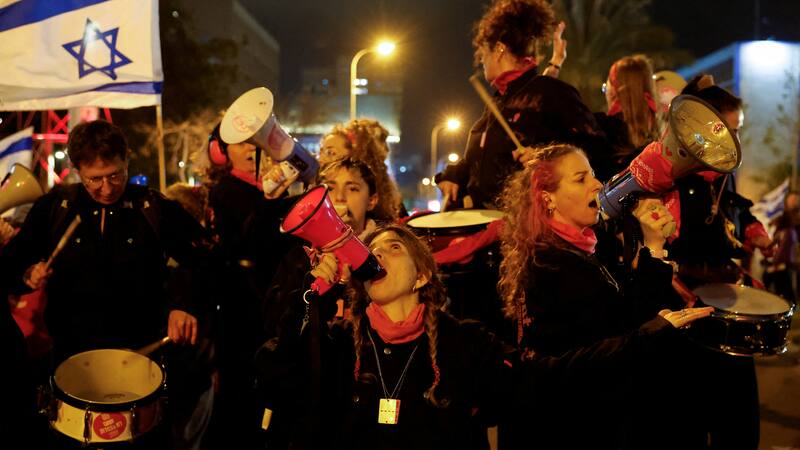 En Tel Aviv, cientos de personas se congregaron responsabilizando a Netanyahu de la situación en Gaza y coreando consignas en favor de la celebración inmediata de elecciones en el país.
