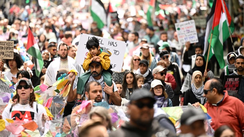En Sídney, miles de manifestantes propalestinos se reunieron antes del aniversario del 7 de octubre, coreando y ondeando banderas libanesas y palestinas ante una fuerte presencia policial.