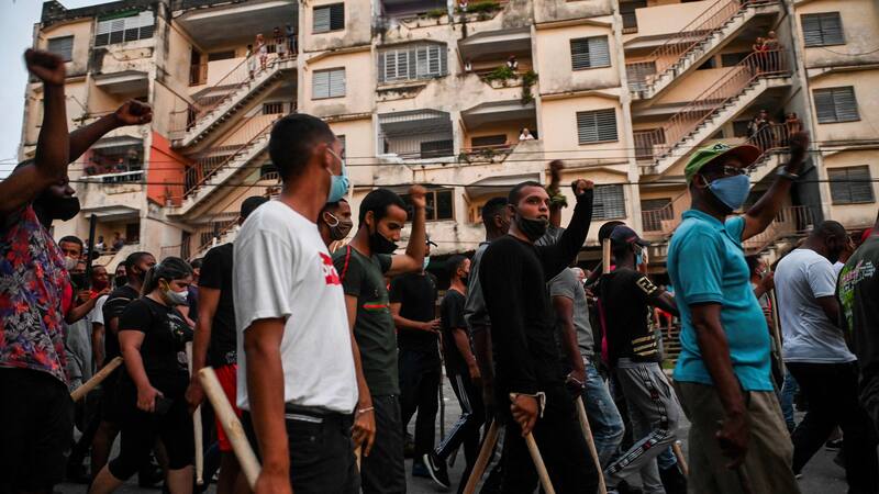 El domingo, miles de cubanos salieron a las calles en decenas de ciudades del país al grito de “tenemos hambre”, “libertad” y “abajo la dictadura”, para protestar por la crisis económica, la escasez de alimentos y medicinas, y los cortes de electricidad.