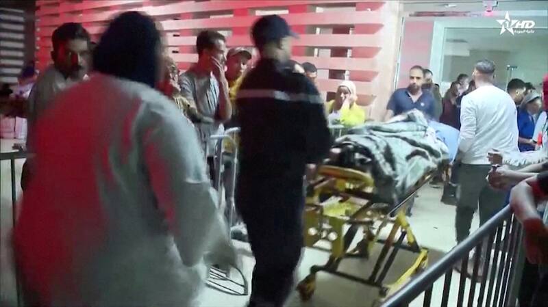 En las empinadas y sinuosas curvas de la carretera entre Marrakech a Al Hauz, las ambulancias que circulaban con las sirenas puestas y los autos vadeaban los montones de roca roja desprendidos de la ladera que bloqueaban la calzada. Trabajadores de la Cruz Roja se afanaban en retirar una piedra que bloqueaba la autovía de dos carriles.