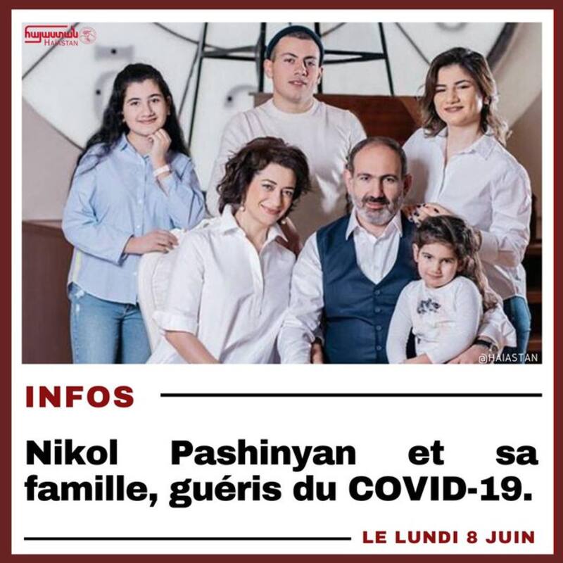 El 1 de junio, el líder de Armenia, Nikol Pashinyan informó que él y su familia habían superado el Covid-19 tras dos pruebas negativas. En los días previos, Pashinyan había señalado que su esposa y cuatro hijos estaban contagiados y que el “utilizar la mascarilla era la forma más segura de detener la propagación del Covid-19″.