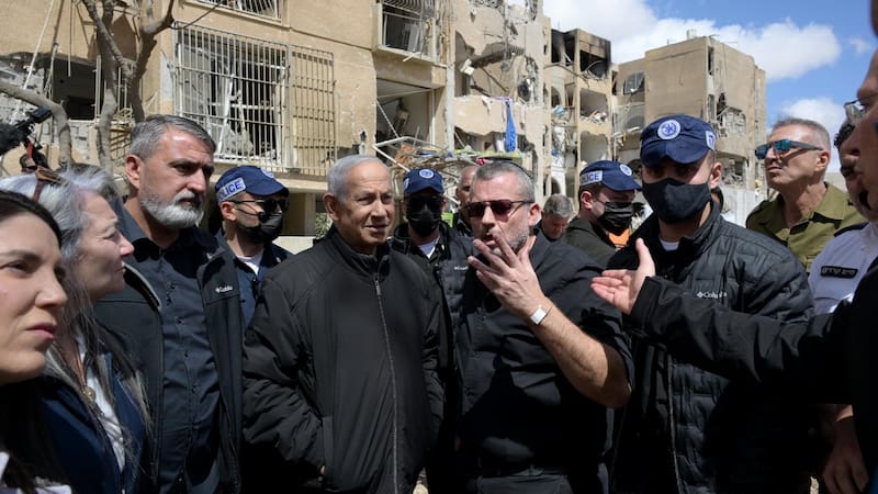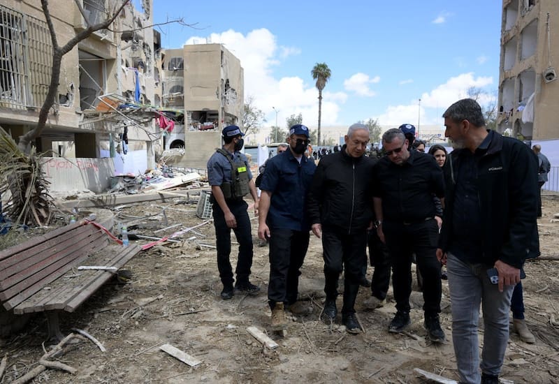 El primer ministro israelí, Benjamín Netanyahu, se dirigió este domingo a Arad, una ciudad al sur de Israel en donde cayó un misil que dejó a más de 100 personas heridas este sábado.