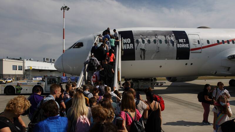 Phan Thị Kim Phuc, la niña que aparece en la emblemática foto de un ataque con napalm en la guerra de Vietnam en 1972, acompañó el lunes a 236 refugiados de la guerra de Ucrania en un vuelo de Varsovia a Canadá.