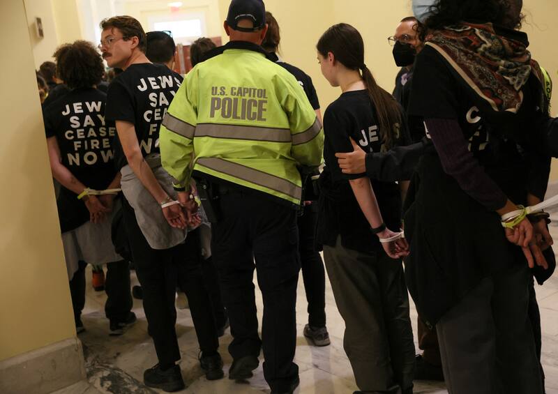 “No en nuestro nombre”: manifestantes judíos ingresan a edificio del Capitolio de EE.UU. para exigir un alto al fuego en Gaza