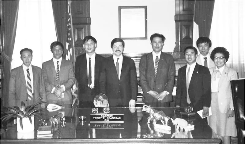 También lo está Luca Berrone, entonces funcionario de desarrollo económico de Iowa, que llevó a Xi a visitar sitios de empresas como Monsanto, Cargill y Quaker Oats, granjas de cereales y ganado, las colonias de Amana (una comunidad religiosa conocida por su herencia agrícola y su vida comunitaria) y la Universidad Estatal de Iowa en Ames.