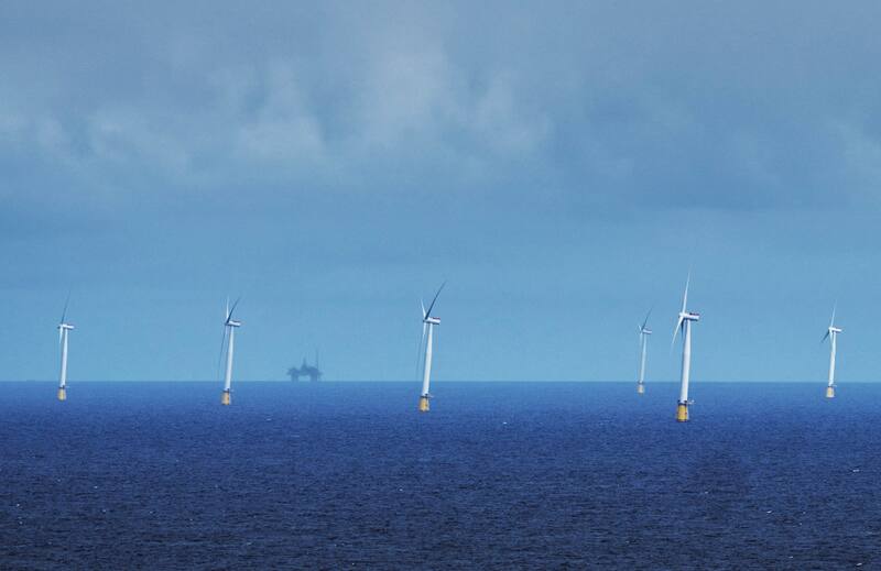 Turbinas eólicas para alimentar plataformas petrolíferas: la imagen es un poco desconcertante. Pero estas 11 turbinas flotantes, de 8,6 megavatios de potencia cada una, generarán el 35% de la electricidad que necesitan 5 plataformas petrolíferas cercanas, que actualmente funcionan con gas y gasóleo.