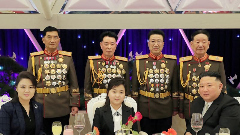 La hija, que se cree que es la segunda hija de Kim, Kim Ju Ae, vestía un traje negro y estaba sentada junto a su padre rodeada de altos oficiales militares. En el banquete, Kim elogió a los militares en el 75 aniversario del Ejército de Corea del Norte. Funcionarios de Seúl dijeron que estaban monitoreando los preparativos para un desfile militar.