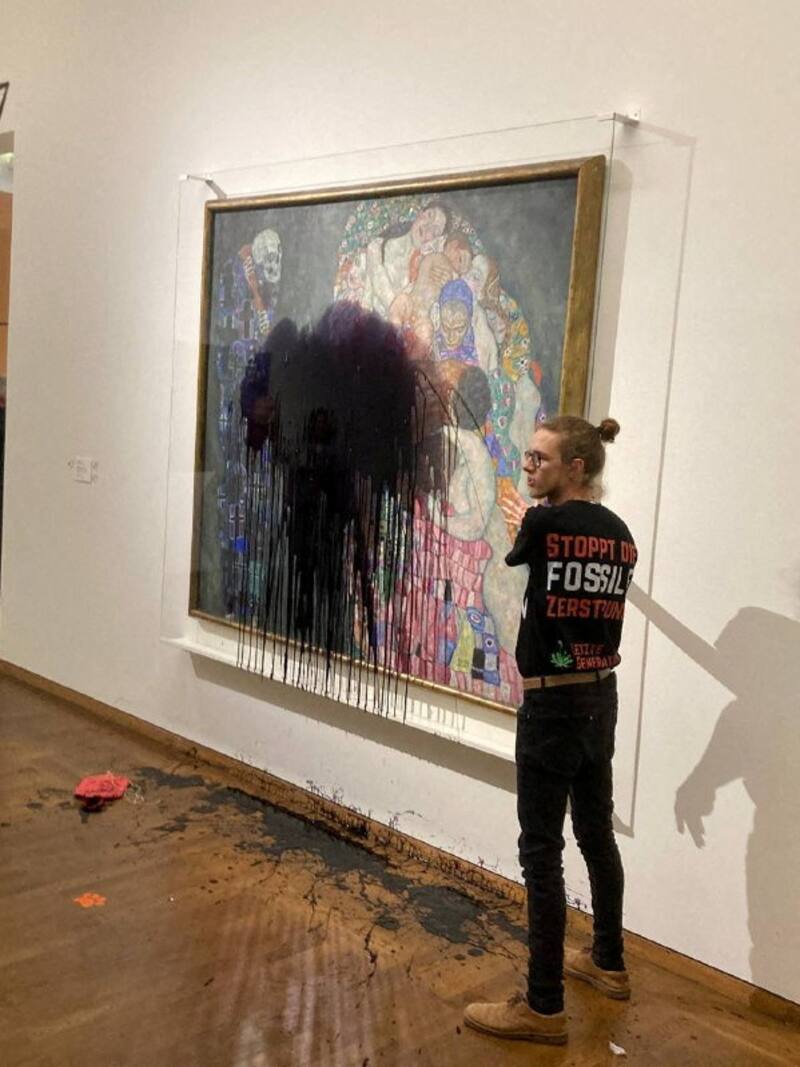 Miembros del grupo Last Generation Austria dijeron en Twitter que habían atacado la obra de 1915 "Muerte y vida" en el Museo Leopoldo de Viena para protestar por el empleo de energías fósiles por parte de su gobierno.