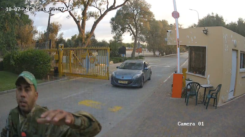 El video del ataque captado por una cámara de vigilancia cerca de la puerta principal de Mefalsim muestra que los atacantes comenzaron a disparar a los residentes tan pronto como llegaron.