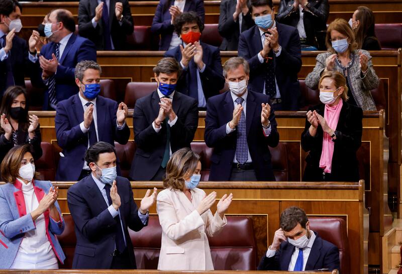 Luego de su discurso, leído en clave de despedida, toda su bancada se paró a aplaudirlo: a pesar de ser estos mismos diputados los que le habían dado la espalda, exigiendo su salida durante la última semana, Casado parecía haber pagado ya el precio. Su eventual dimisión se daba por sobreentendida ya desde el martes, luego de la renuncia de su secretario general, Teodoro García Egea, y el llamado a Junta Directiva Nacional del PP para el próximo martes, paso reglamentario para la cita a un congreso extraordinario del partido conservador.