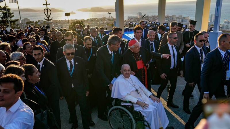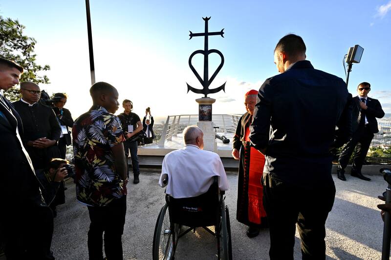 El viernes, Francisco se reunió con sacerdotes de Marsella en la basílica de Nuestra Señora de la Guarda y después encabezó una oración interreligiosa en el monumento cercano, ubicado en un afloramiento rocoso que da hacia Marsella y el mar Mediterráneo. En ese lugar, Francisco dijo que muchísimas personas que huyen de la guerra, la pobreza, la miseria y los desastres climáticos nunca alcanzaron la costa.
