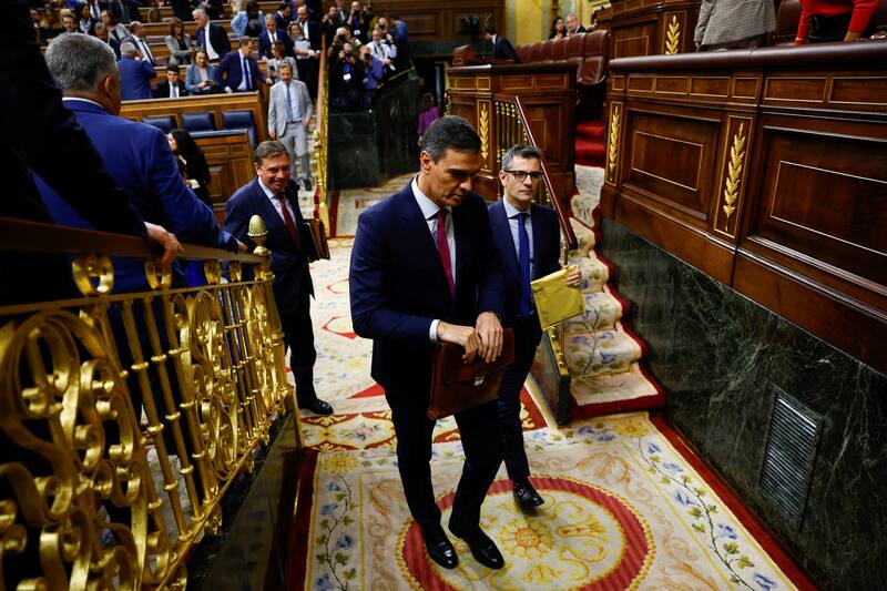 Sánchez ha presentado este miércoles a su Gobierno como un “muro” frente a la “agenda reaccionaria” que, a su juicio, representan las “derechas retrógradas” de Alberto Núñez Feijóo (PP) y Santiago Abascal (Vox), cuyos gobiernos en autonomías y ayuntamientos buscan “desmantelar” los “avances” que han logrado las últimas décadas. A su entender, al “bendecir” a la ultraderecha, el líder del PP se suma al club reaccionario de Trump, Orbán y Le Pen”.