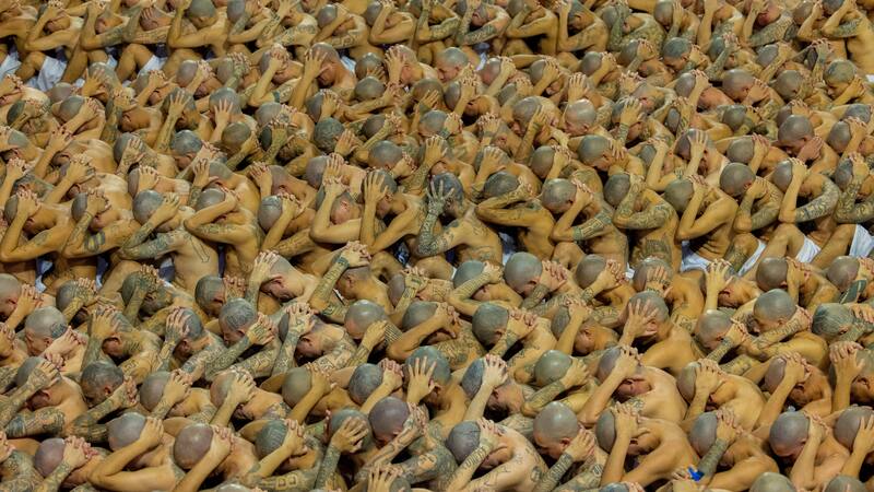 Las imágenes de los presos, sin camiseta, con los tatuajes característicos de las pandillas, esposados, agachados y amontonados acararon las noticias de todo el mundo, incluso se abrió un debate sobre las condiciones humanitarias de las encarcelados.