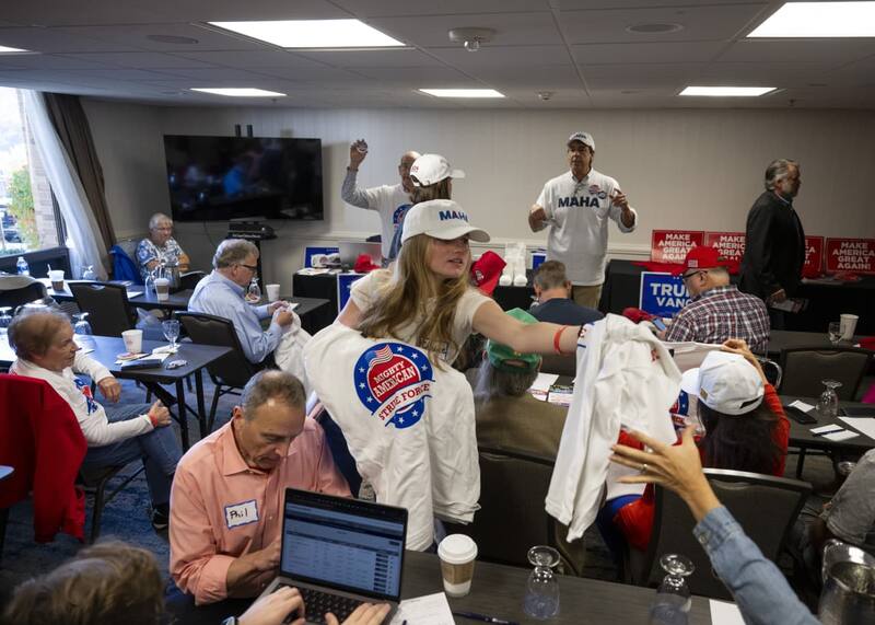 El miércoles por la mañana, se unió a otros 50 activistas de Texas, California y otros estados para una reunión informativa en un DoubleTree local antes de dispersarse por todo el condado. Rick Potter, presidente nacional de Mighty American Strike Force, otro grupo que reúne votos para Trump, dio consejos: ser amable, tener cuidado con los perros, tocar el timbre solo una vez y, lo más importante, limitar las conversaciones el día del partido de los Steelers.