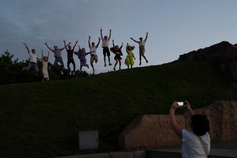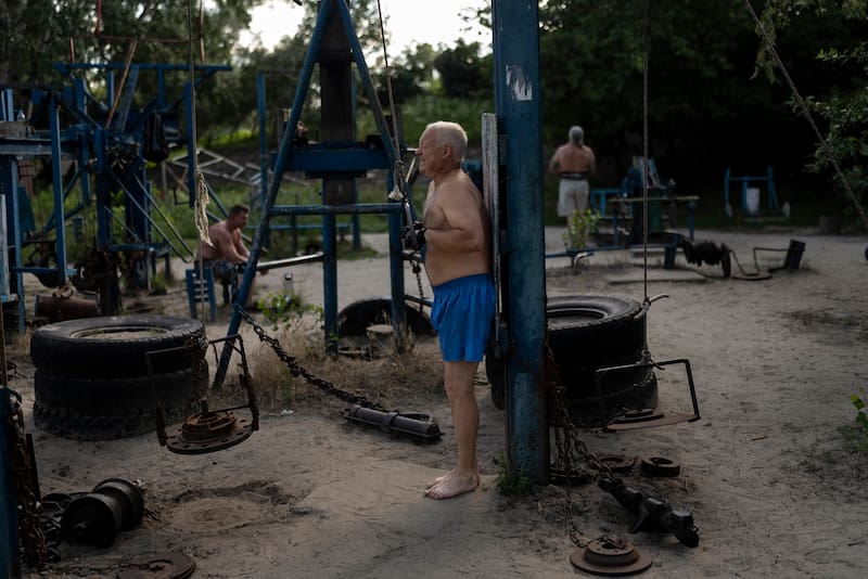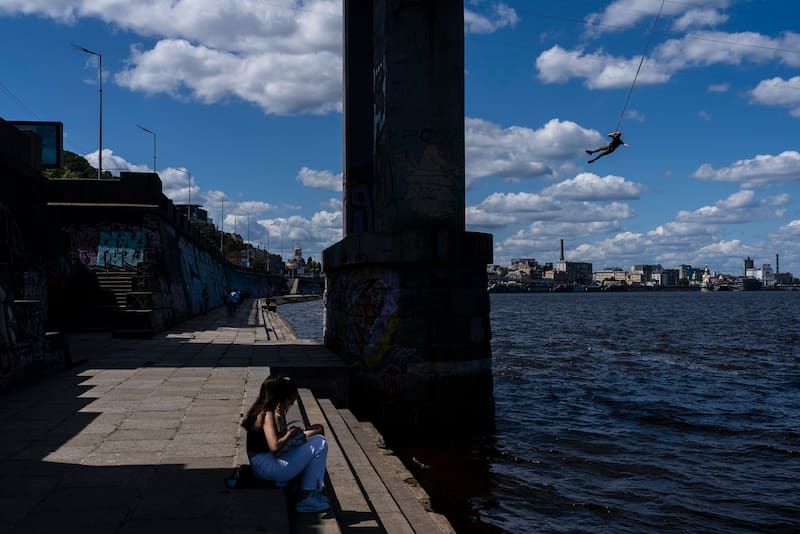 Al caminar por las calles de Kiev este verano, se pueden ver signos de normalidad en todas partes: una pareja acurrucada en un banco. Niños jugando en los parques. Saltadores de bungee colgando sobre el río Dniéper. Una pareja de recién casados bailando música en la calle.