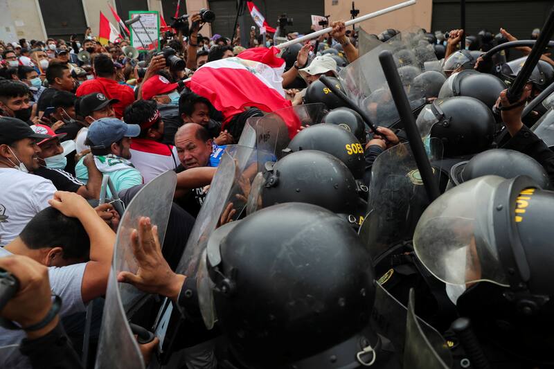 En el distrito de La Molina los pobladores realizaron una marcha hasta la céntrica plaza San Martín, donde se produjeron roces con la policía resultando lesionados algunos manifestantes. Pese al cordón de seguridad a varias cuadras del Congreso, centenares de personas intentaron romper el cerco para aproximarse hasta ese lugar y expresar su rechazo a la medida tomada por el Gobierno de Pedro Castillo.