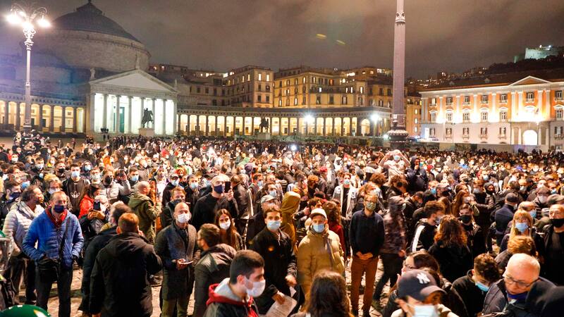 A raíz del anuncio del primer ministro de Italia, Guissepe Conte, respecto al aumento de restricciones sanitarias para varios ciudades comenzaron a desarrollarse multitudinarias manifestaciones ciudadanas para manifestar el rechazo a éstas.