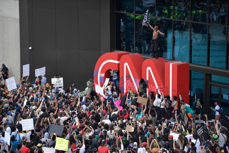 Después de horas de protestas pacíficas en el centro de Atlanta, Georgia, algunos manifestantes se tornaron violentos repentinamente, golpeando patrullas de la policía, prendiéndole fuego a una, pintando con aerosol el logotipo de CNN en la sede de la cadena y metiéndose a la fuerza a un restaurante.