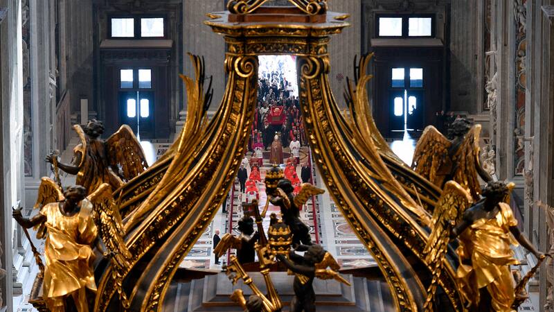 En la Basílica Vaticana, se realiza la concelebración presidida por el Cardenal Kevin Joseph Farrell, Camarlengo de la Santa Iglesia Romana.