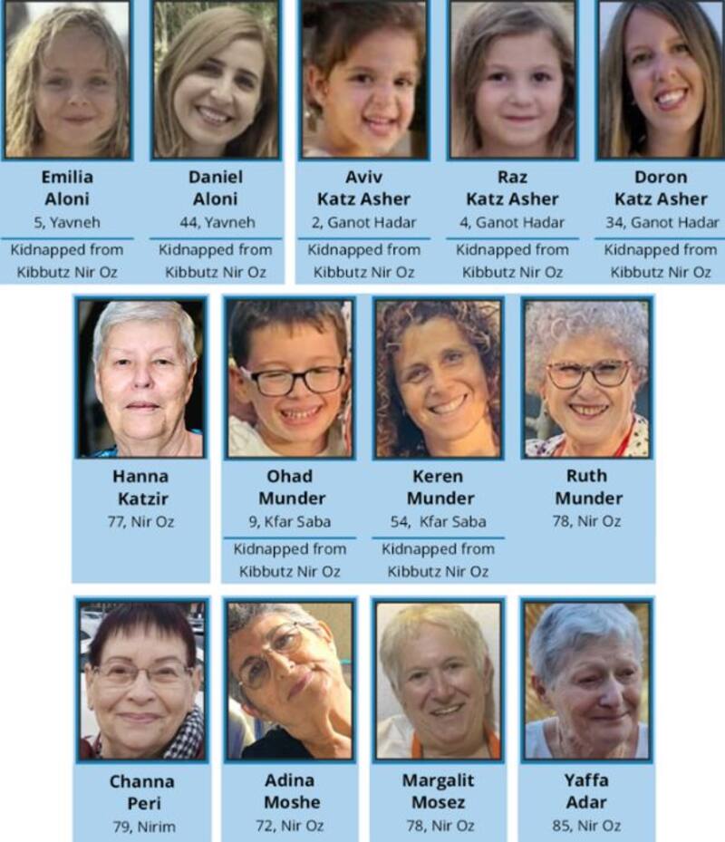 Doron Katz-Asher, de 34 años, y sus hijas Raz (4 años) y Aviv (2 años) fueron parte del grupo liberado, y fueron secuestradas mientras visitaban el kibbutz Nir Oz. La madre de la mujer, Efrat Katz, fue asesinada en el ataque del 7 de octubre, mientras que su pareja fue secuestrada junto a su exesposa, Margalit Mozes.