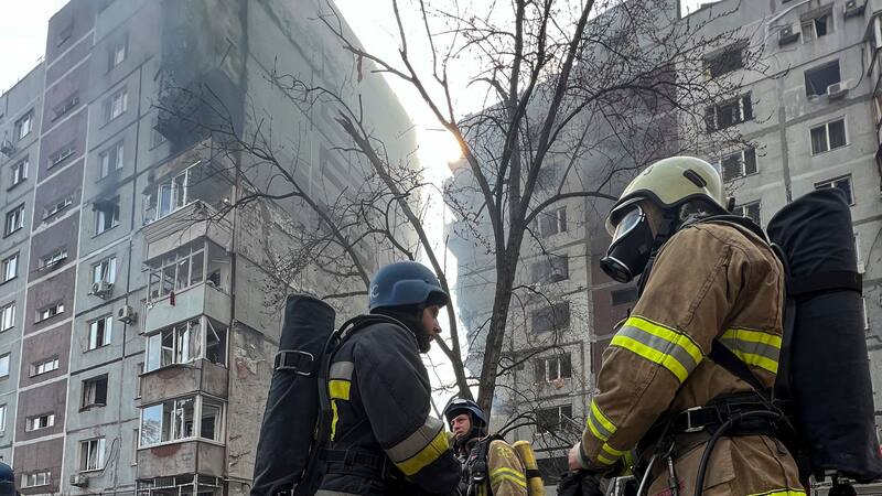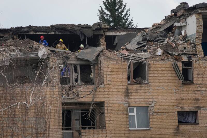 Las sirenas sonaron en la capital y en amplias zonas del norte de Ucrania y el ejército declaró haber derribado 16 de los 21 drones suicidas Shahed, de fabricación iraní. Dos edificios de viviendas y un centro educativo de la ciudad ribereña de Rzhyshchiv, al sur de la capital, quedaron parcialmente destruidos, según informó el Servicio Estatal de Emergencias en la aplicación de mensajería Telegram.