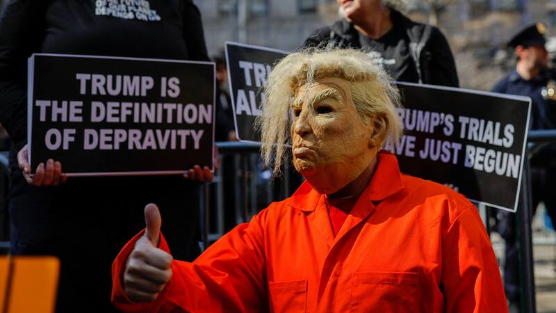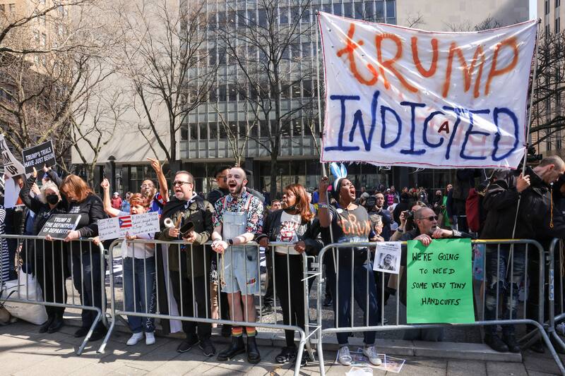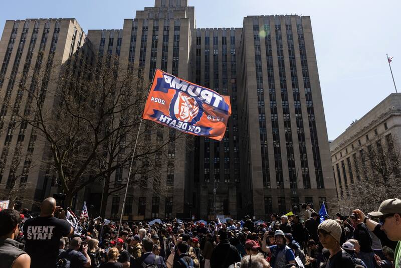 Seguidores y detractores de Trump se concentran ante el tribunal de Nueva York a la espera de su comparecencia