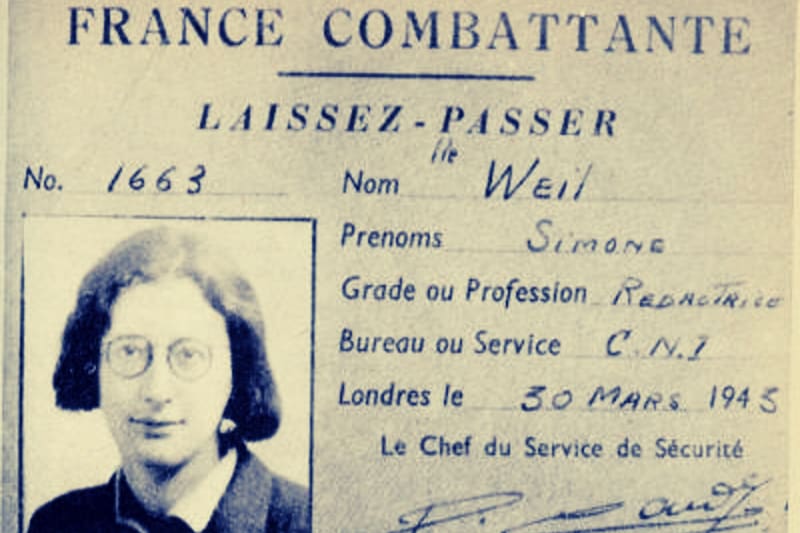 Simone Weil fue destinada al trabajo intelectual, lo que para ella fue doloroso. Su salud ya estaba muy resentida y en abril de 1943 fue diagnosticada con tuberculosis. No quiso recibir tratamiento. Solo creía en el vaciamiento interior del yo para una atención absoluta.