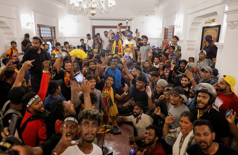 Los acontecimientos fueron recibidos con la ira de los manifestantes que durante meses han estado protestando por el manejo del gobierno de la peor crisis económica de Sri Lanka en décadas. Helicópteros del Ejército sobrevolaron y la policía desplegó carros lanzagua y gas lacrimógeno, pero no pudo evitar que hordas de manifestantes irrumpieran en la oficina del primer ministro, en escenas que recuerdan el levantamiento popular del sábado, en el que miles ocuparon la residencia oficial del presidente, su oficina frente al mar y la casa del primer ministro. También el miércoles, la emisora estatal de Sri Lanka detuvo temporalmente la transmisión después de que los manifestantes ingresaran al estudio durante una transmisión en vivo.