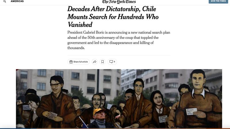 The New York Times destaca plan de Boric para búsqueda de detenidos desaparecidos en Chile