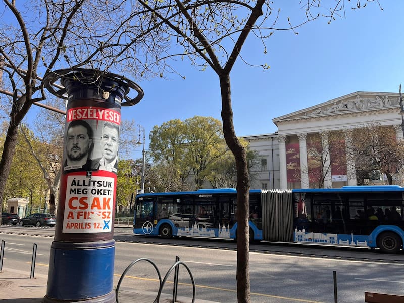 Durante la campaña, fue normal ver carteles de propaganda oficialista que mostraban a Péter Magyar y Volodymyr Zelensky juntos, acusándolos de “peligrosos”. Estas imágenes, puestas por Fidesz, también incluían a Ursula con der Leyen y otras figuras de la Unión Europea, caracterizadas como “enemigas de Hungría”.