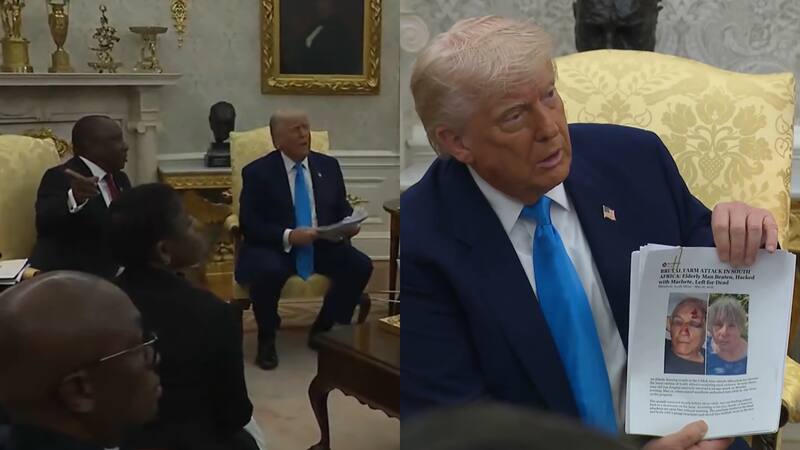 En una reunión con el presidente de Sudáfrica, Cyril Ramaphosa, Trump mostró un video en el que aparecían opositores sudafricanos que supuestamente confirmarían la "persecusión de los granjeros blancos" del país africano.
