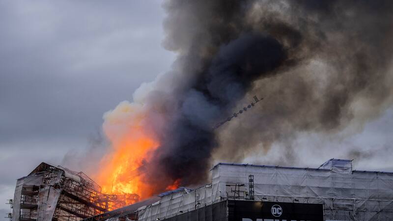 Un incendio devasta el histórico edificio de la Bolsa de Copenhague