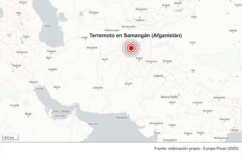 Un potente terremoto de magnitud 6,3 sacudió el norte de Afganistán, con epicentro situado cerca de una de las ciudades más grandes del país, Mazar-e Sharif, sin que por el momento haya información oficial sobre daños personales o materiales.