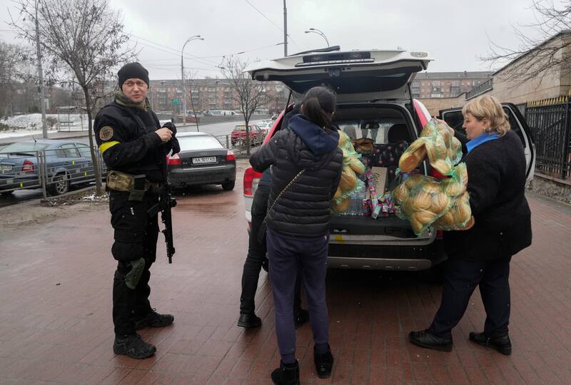 El miércoles pasado también se le vio apoyando a civiles en las compras. Utilizando su propio automóvil, le llevó alimentos a personas que se encuentran en refugios en Kiev.