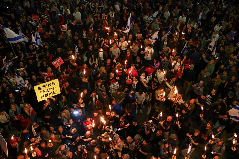 Una vez concluida la manifestación los asistentes se sumaron a la concentración por los rehenes a pocos cientos de metros, en la calle Begin, donde volvieron a arder las antorchas símbolo de la protesta, en la que es ya la mayor movilización popular en Israel desde el 7 de Octubre.